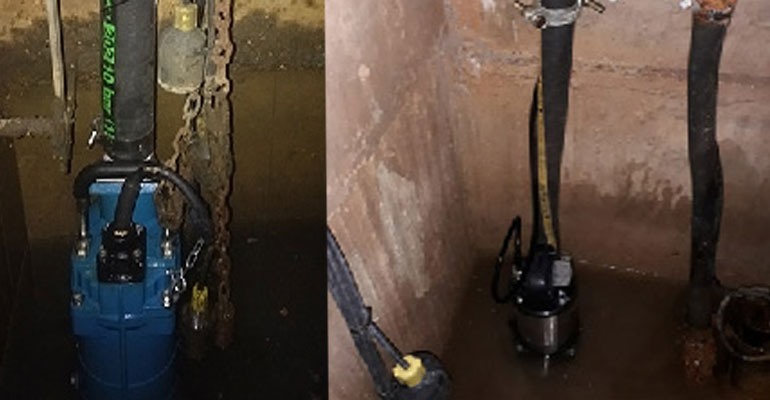 Two water pumps installed for pumping out the water collected in the sump pit